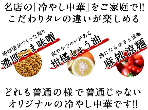 - 【6食セット/各2食×3名店】冷やし中華(胡麻味噌/柑橘しょう油/麻辣涼麺)