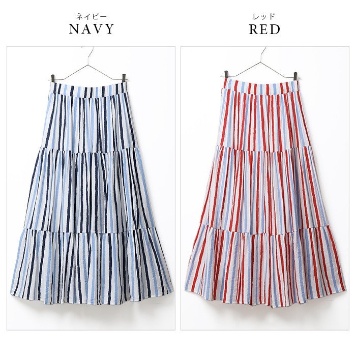 - 清涼感のある、大人の甘さ。マルチストライプ ティアードスカート