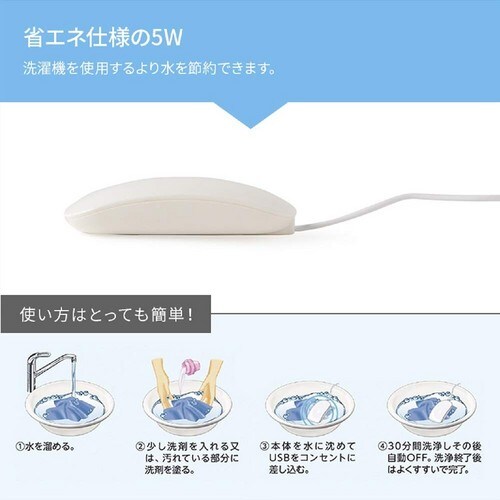 省エネ仕様の5Wで、洗濯機を使用するより水を節約できます。