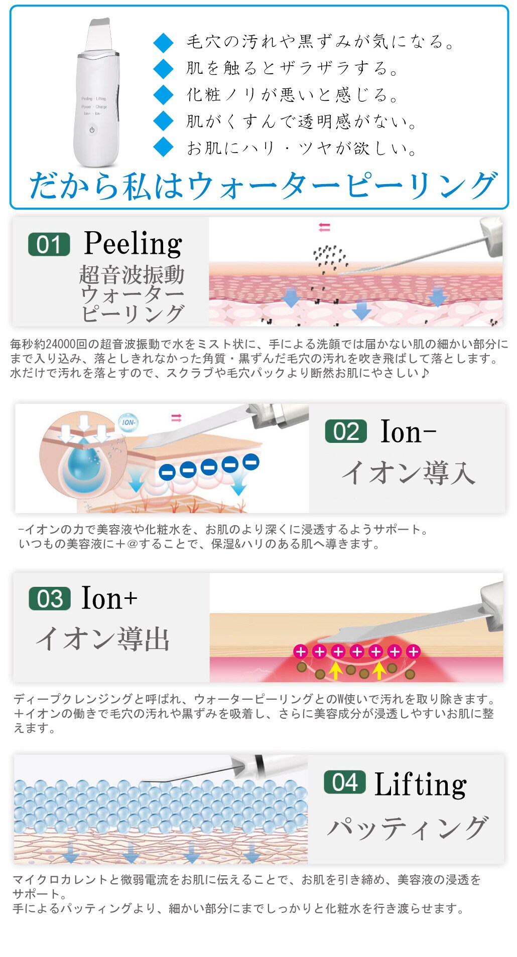 - 超音波ウォーターピーリング美顔器/毛穴レスな肌へ。
