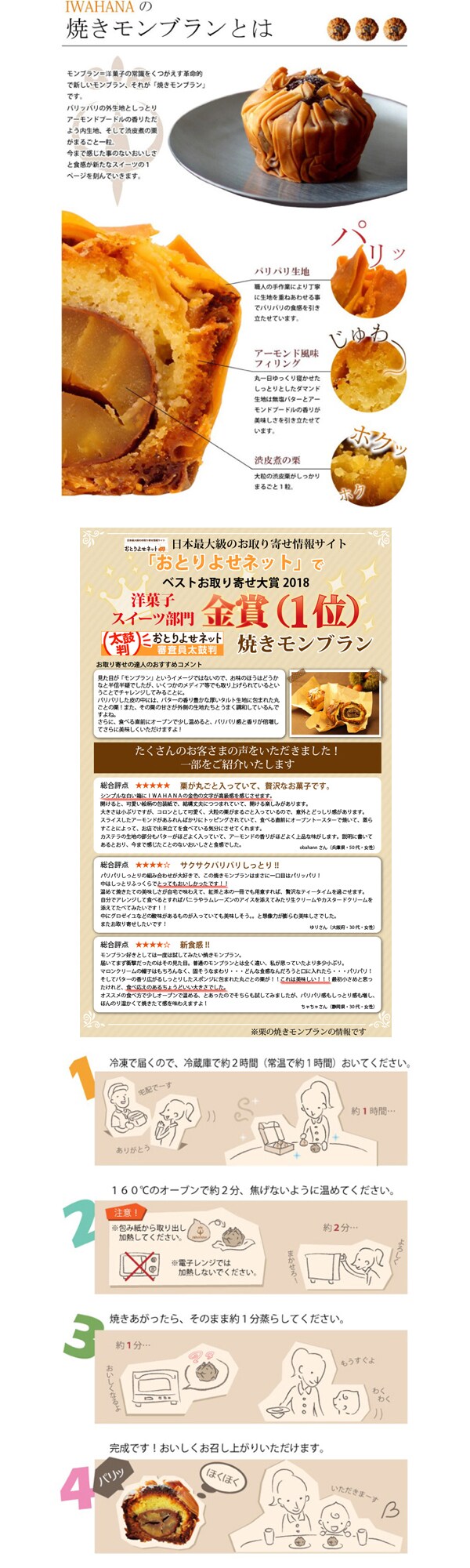 【6個入】IWAHANA焼きモンブラン | ベストお取り寄せ大賞2018 洋菓子・スイーツ部門金賞受賞