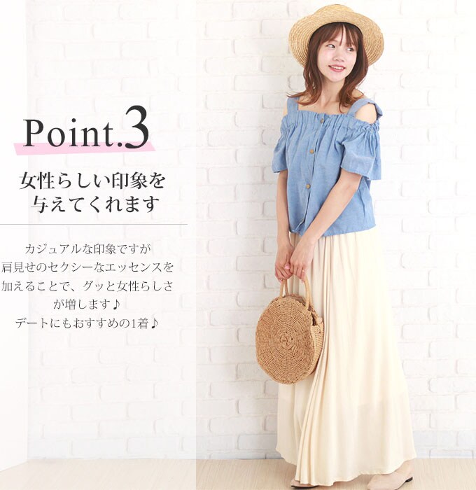 オフショルダートップス | 肩のラインを綺麗に見せてくれるオフショルダートップス
