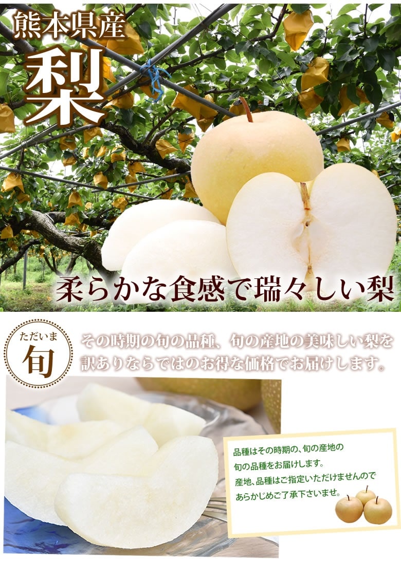 【約1.5kg】熊本県産 梨《個数・品種おまかせ》(ご家庭用・傷あり) | 2セットで1セット分おまけ・3セットなら3セット分おまけ増量♪