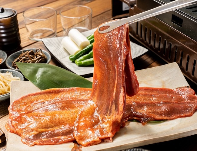 じっくりタレに漬け込んだ、大判サイズの本場の牛タン横切りスライス。