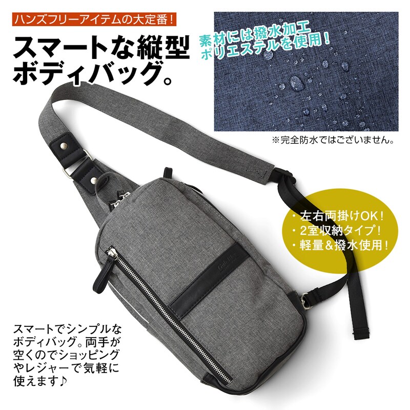 撥水加工【ユニセックス ブランド ボディバッグ】整頓がしやすい | ハンズフリーアイテムの大定番!スマートな縦型ボディバッグ。