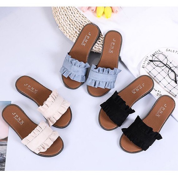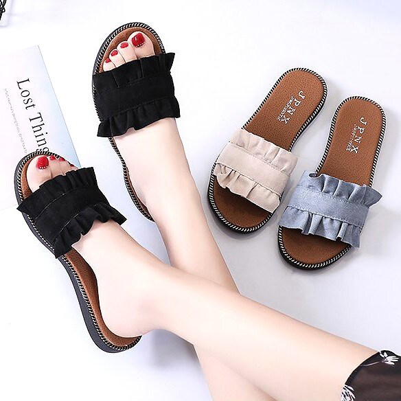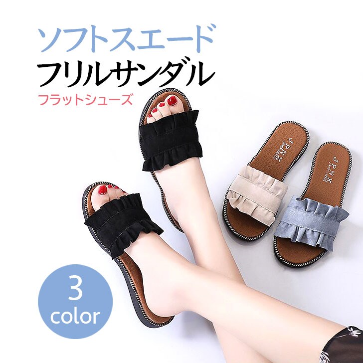 - レディース フリルサンダル かわいい ぺたんこ ビーチサンダル レディースサンダル フラットシューズ