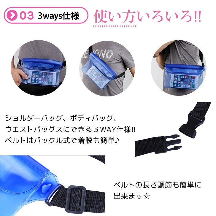- 防水ポーチ 3WAY 2個セット | 防水ケース iPhone スマホ アウトドア ウエストバッグ
