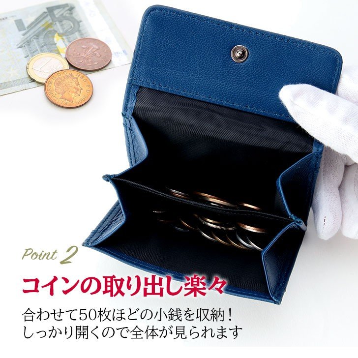 - 本革 小銭入れ コインケース 羊革 羊皮 大容量 コイン入れ お札入れ スリム ボタン式 パスケース