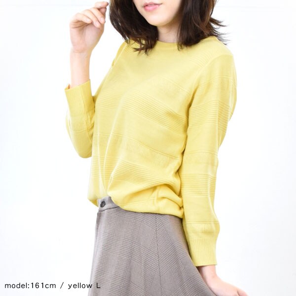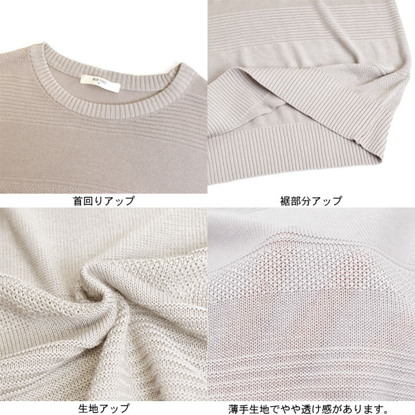 - シンプルカジュアル透け感七分袖ボーダーニットソー レディーストップス