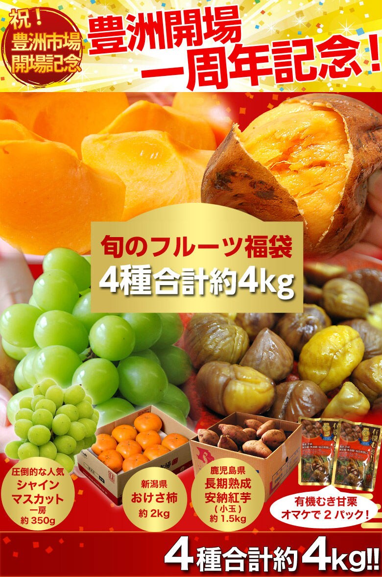 【計4kg】お試しフルーツ福袋!シャインマスカット・柿・芋・栗 | 豊洲開場一周年記念!旬のフルーツを厳選!