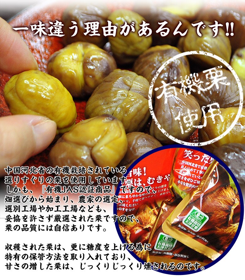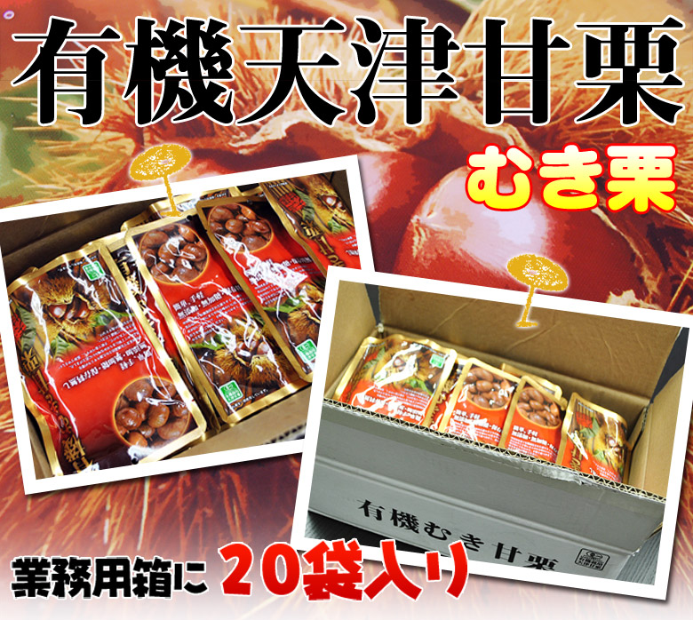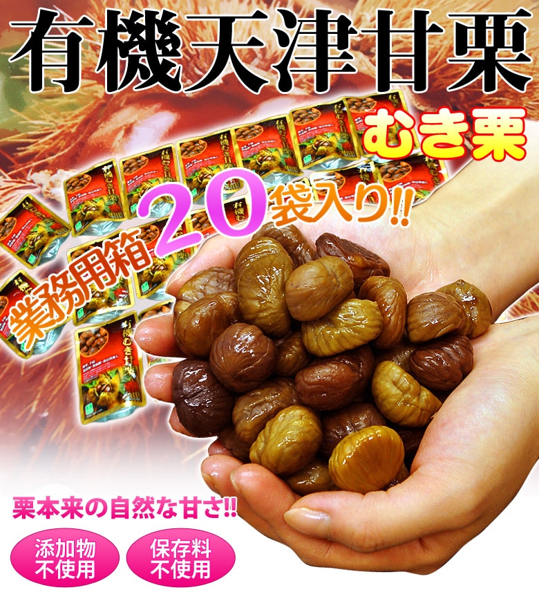 - 【計1.6kg(80g×個包装20袋)】有機天津甘栗(むき栗、有機JAS認証商品、添加物・保存料不使