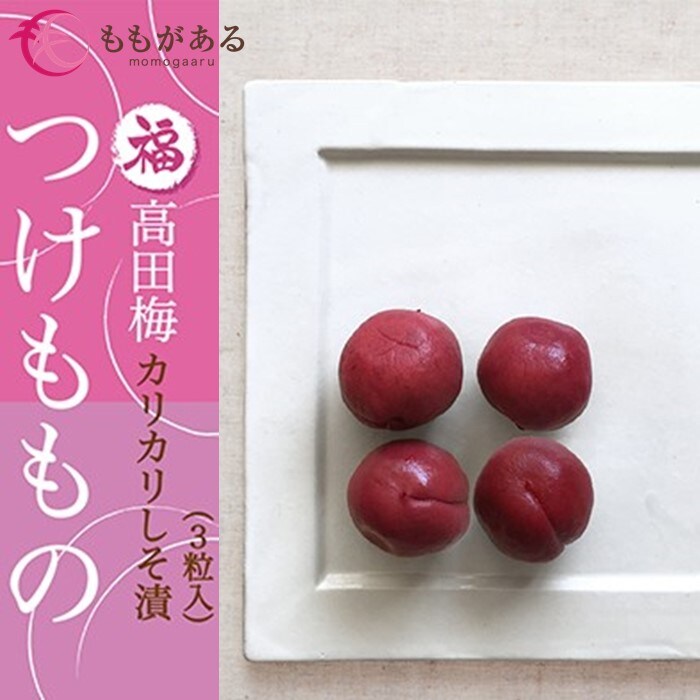 【 5袋 】 つけももの ( 漬物 ) 高田梅 カリカリしそ漬 3粒入 [ ももがある ] | 福島のブランド梅「高田梅」。本来の味を出すため、塩としそだけで漬けました。