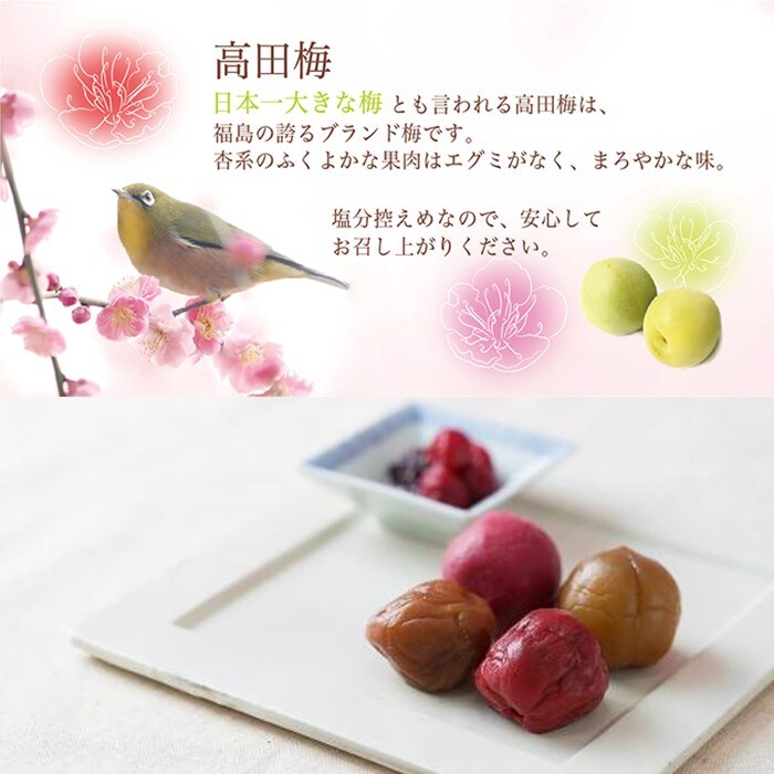 福島県特産で、日本の梅の品種の中でも一番大きいと言われているのが高田梅です。