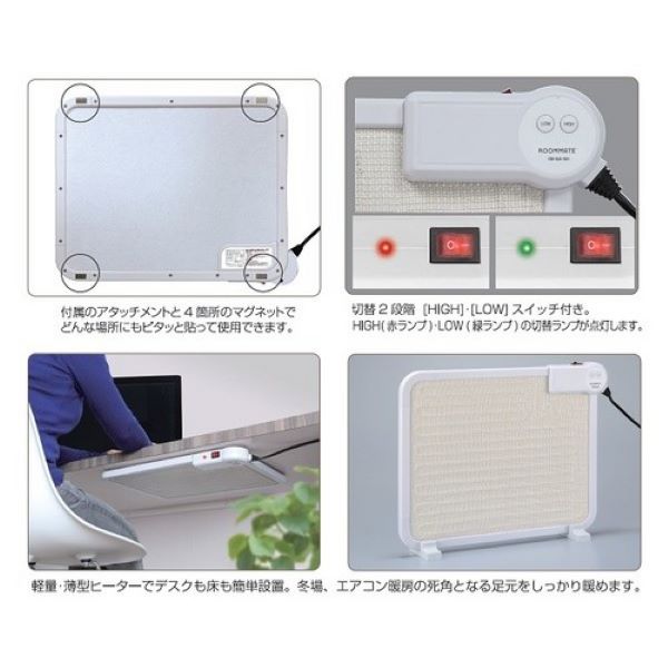 [ホワイト] ROOMMATE/2WAY デスクヒーター/RM-66AWH | ピタッと張るのも、床置きもするのも簡単、計量・薄型ヒーター!