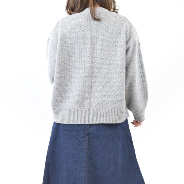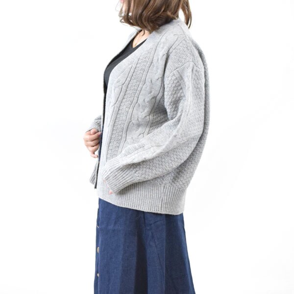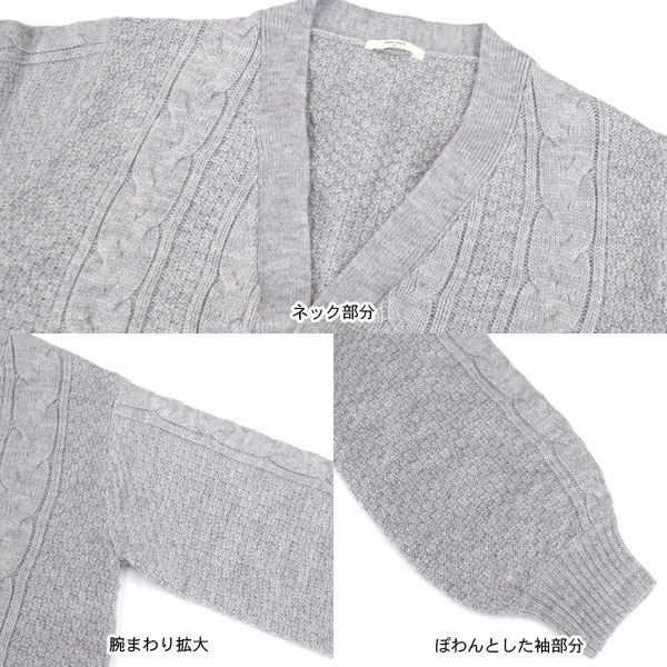 - ボリューム袖ざっくり編みゆったり厚手ニットカーディガン レディーストップス