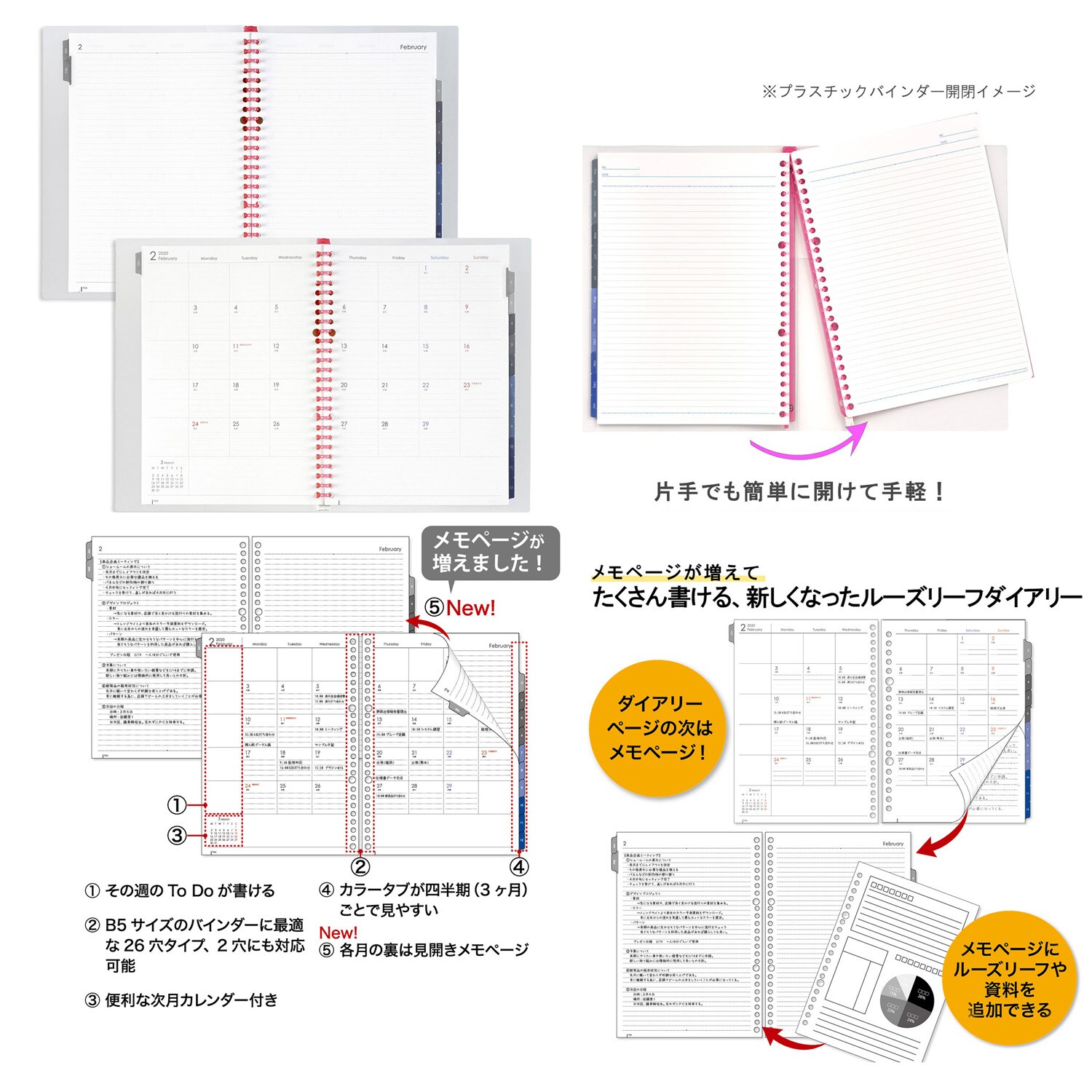 【選べるカラー3色】マルマン/手帳 2020 ノート デ ダイアリー B5 マンスリースケジュール帳 | ダイアリー、ルーズリーフ、クリアポケットがセットされたオールインワンスケジュール帳