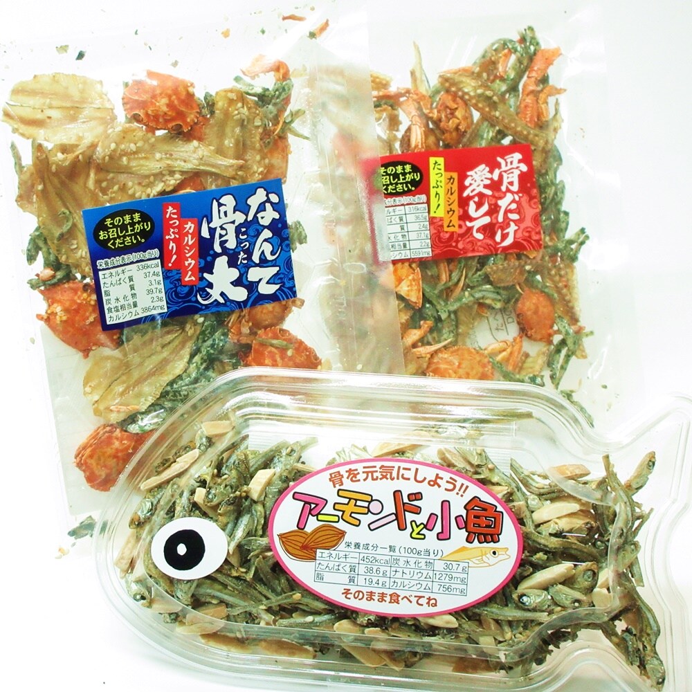 なんて骨太 (1袋) 骨だけ愛して (1袋) アーモンド小魚 (1個) 珍味セット | 100g当たり9455mgの豊富なカルシウム!家族全員でおいしい習慣!