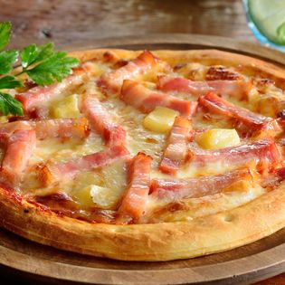 大きめのベーコンをふんだんにのせて、ゴーダ・ステッペン・カマンベール・グラナパダーノの4種のチーズが複雑に絡み合うピザ。生地は、デュラム小麦※やビール酵母を使用し、もちもちっと弾力のある食感に。太陽の下で自然に熟したトマトを使用した、ほどよい酸味のトマトソースがベーコンのうま味、チーズのコクを引き立てます。※製品中に12%にデュラム小麦使用。
