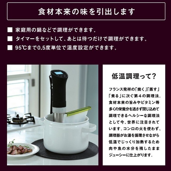富士商スーヴィードクッキング 低温調理器 | フランス発祥の低温調理を家庭でも使えるコンパクトサイズ。