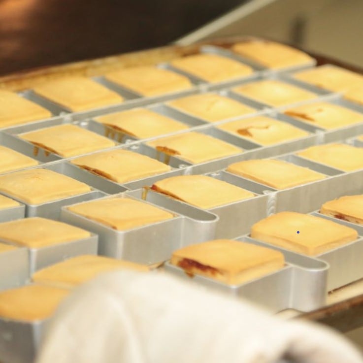- 焼成段階で中のジャムがはみ出て割れてしまった規格外のパイナップルケーキとブルーベリーケーキの詰合せ。