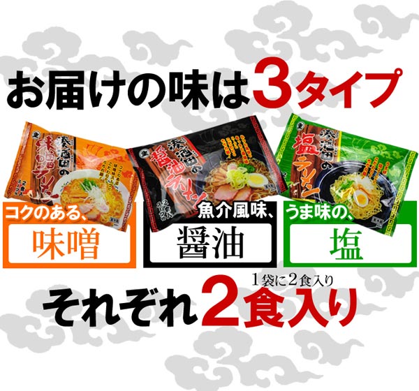 【6袋セット】酒田ラーメン(醤油2袋・味噌2袋・塩2袋) ご当地麺の3種詰め合わせセット! | 製麺所が作る生麺が自慢のツルツル酒田ラーメンを醤油・味噌・塩セット