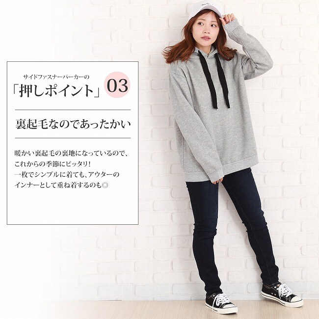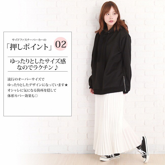 - 【ブラックM】サイドファスナーパーカー【vl-1144】【W/W】