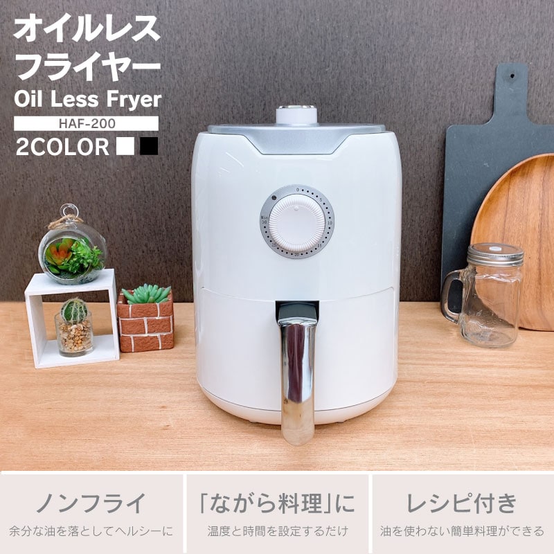 【ホワイト】オイルレスフライヤー/HAF-200WH | 油を使わず美味しくヘルシーに揚げ物を!簡単レシピ付き
