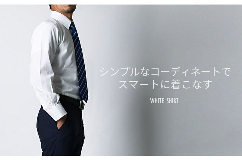 - 【M-39-82/レギュラー衿 】メンズ 白 Yシャツ 長袖【スマート】