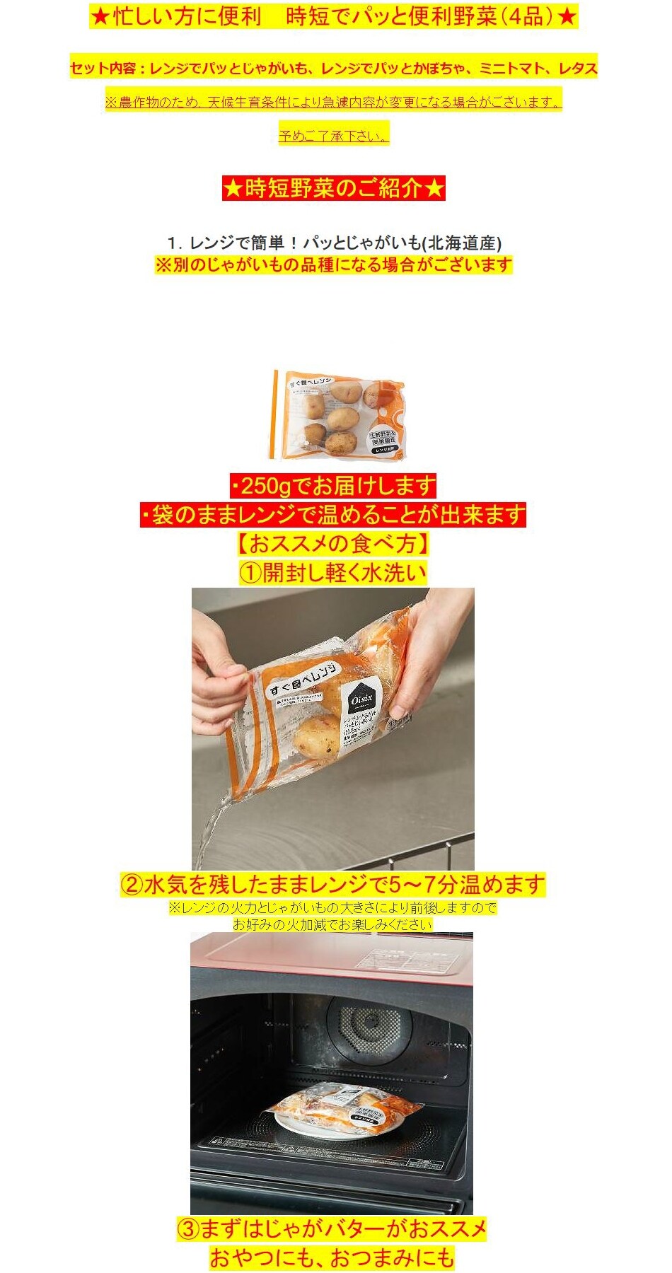 【Oisix】【便利野菜】忙しいときにパッと使える野菜4品(じゃがいも、かぼちゃ、ミニトマト、レタス | 忙しいときに便利なレンジで温めるだけ、カットするだけのお助け野菜です