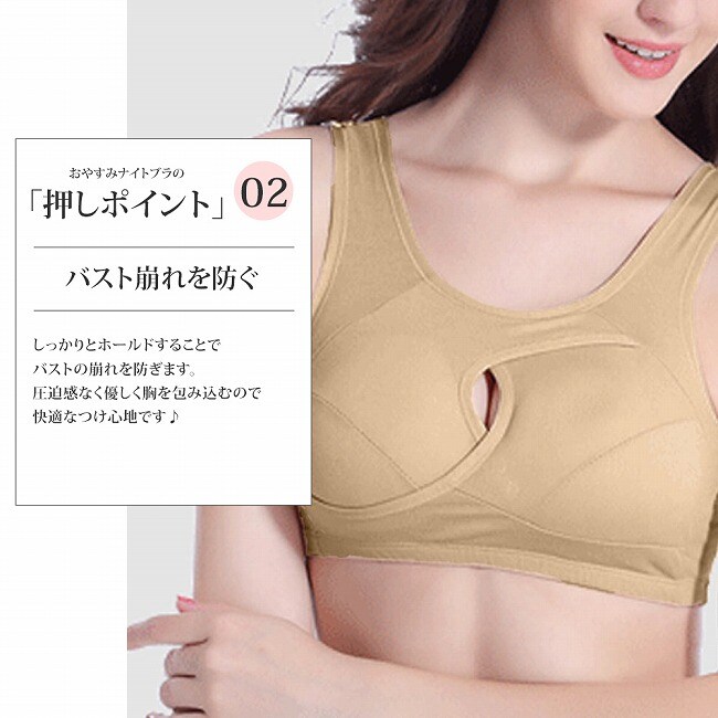 ・バストを綺麗に保ってくれるナイトブラ!胸元がクロスになっているのでバストを中心へと保ち、寝ている間もバストの位置をしっかりキープしてくれます。