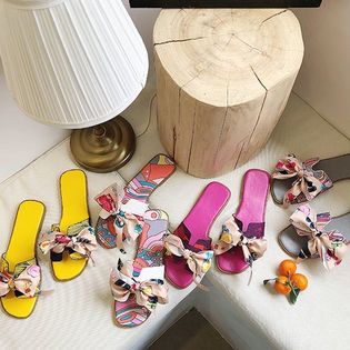 - 【ピンク・230mm】リボン飾り花柄プリントサマーサンダル