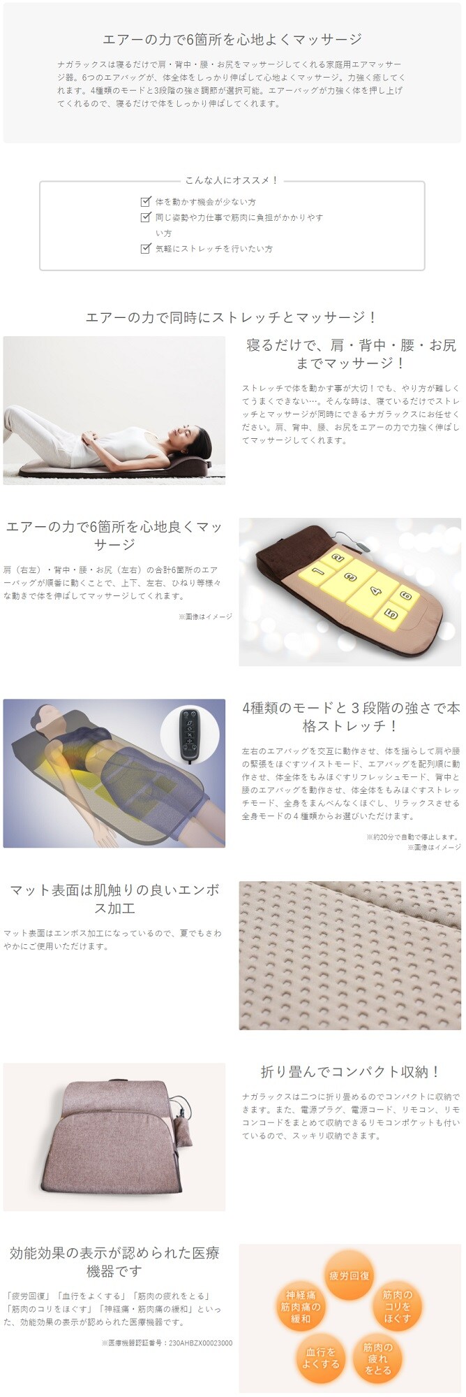 ナガラックス | 寝るだけで、エアーの力で6箇所を心地よくマッサージ