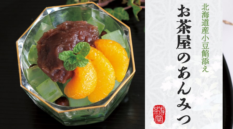 <お茶屋のあんみつ>【みつまめ】ぶどう糖果糖液(国内製造)、砂糖、赤えんどう豆、寒天/甘味料(ソルビトール)、乳酸Ca、クエン酸、酸味料、塩化Ca【粒餡】砂糖(国内製造)、小豆(北海道産)/グリシン【抹茶粉蜜】砂糖(国内製造)、抹茶、デキストリン