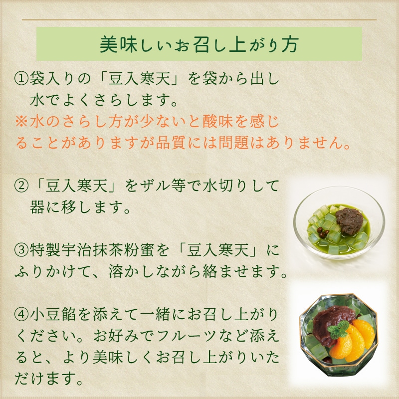 - 京くずきり(くずきり100g・抹茶蜜7g)×3袋・お茶屋のあんみつ(みつまめ100g、粒餡35g、抹茶粉蜜7g)×2