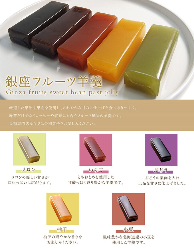 緑茶だけでなくコーヒーや紅茶にも合うフルーツ風味の羊羹です。