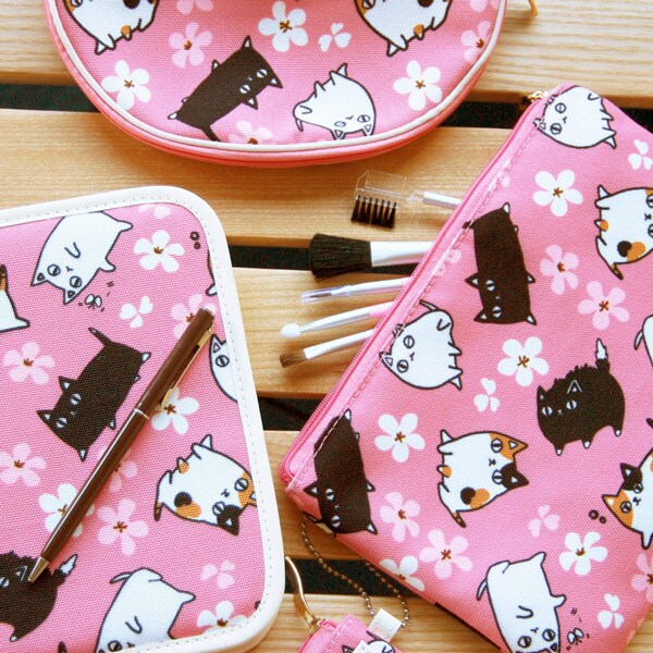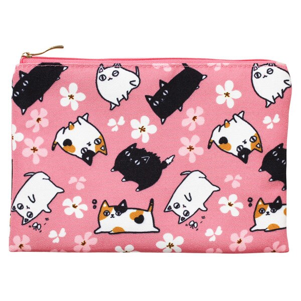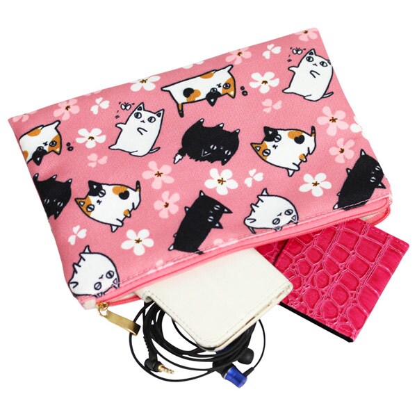 【ピンク/猫3兄弟】 平ポーチ | 平たいのでカバンの中でもかさばらない、使い道いろいろの柔らか四角ポーチ。