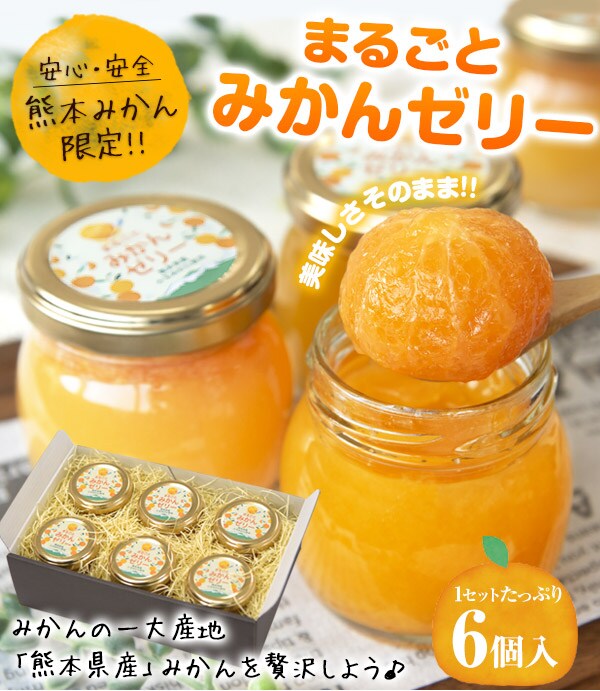 【1セット 6個入り】 まるごとみかんゼリー | 熊本県産の小玉みかんをまるごと1個を使用した濃厚ゼリー