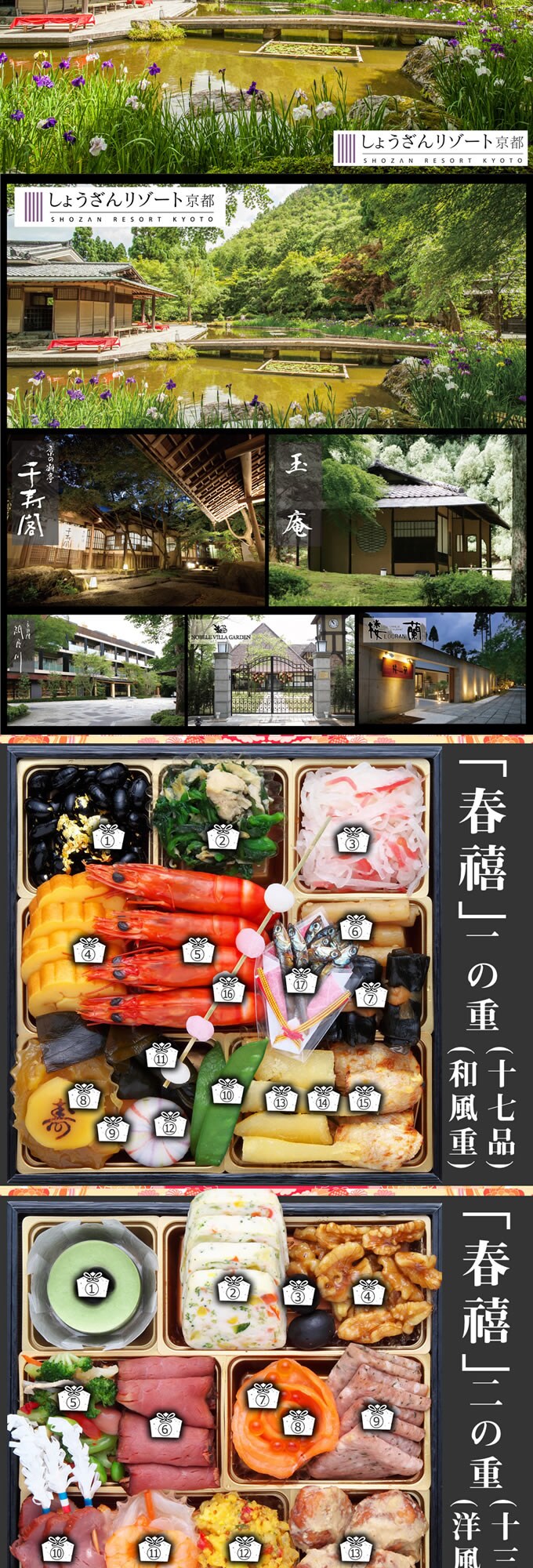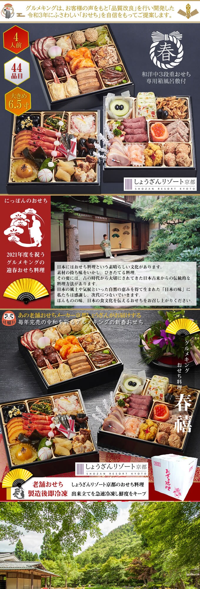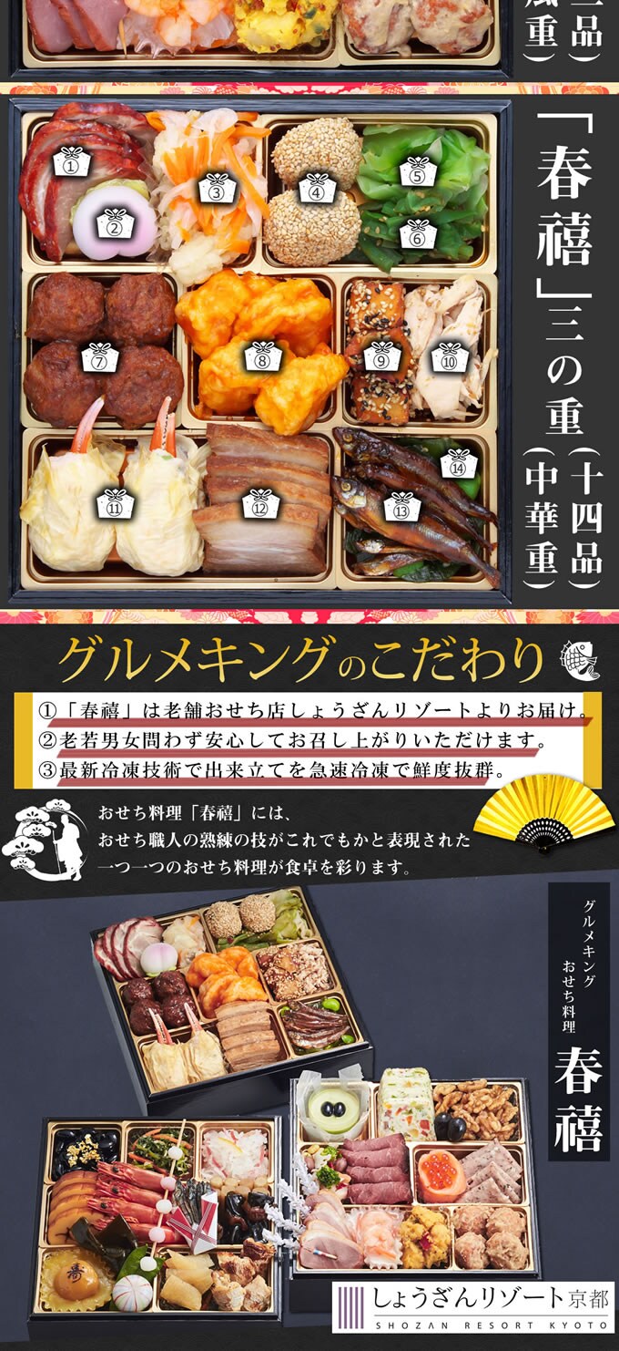 - 【4人前44品入】しょうざんリゾート京都のおせち「春禧」6.5寸和洋中おせち三段重