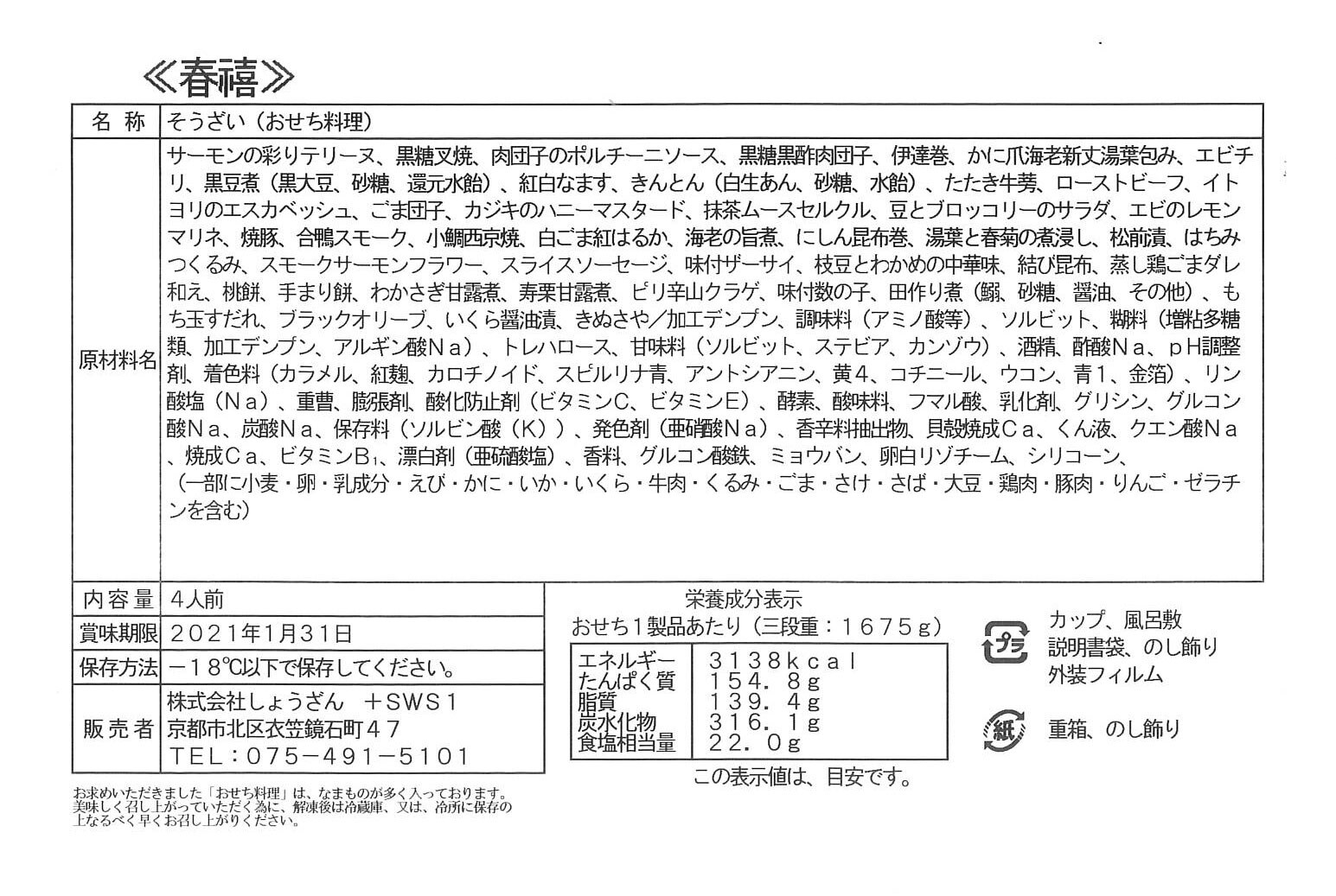 - 【12/30午前着】京都しょうざん おせち「千寿閣」(与段重...