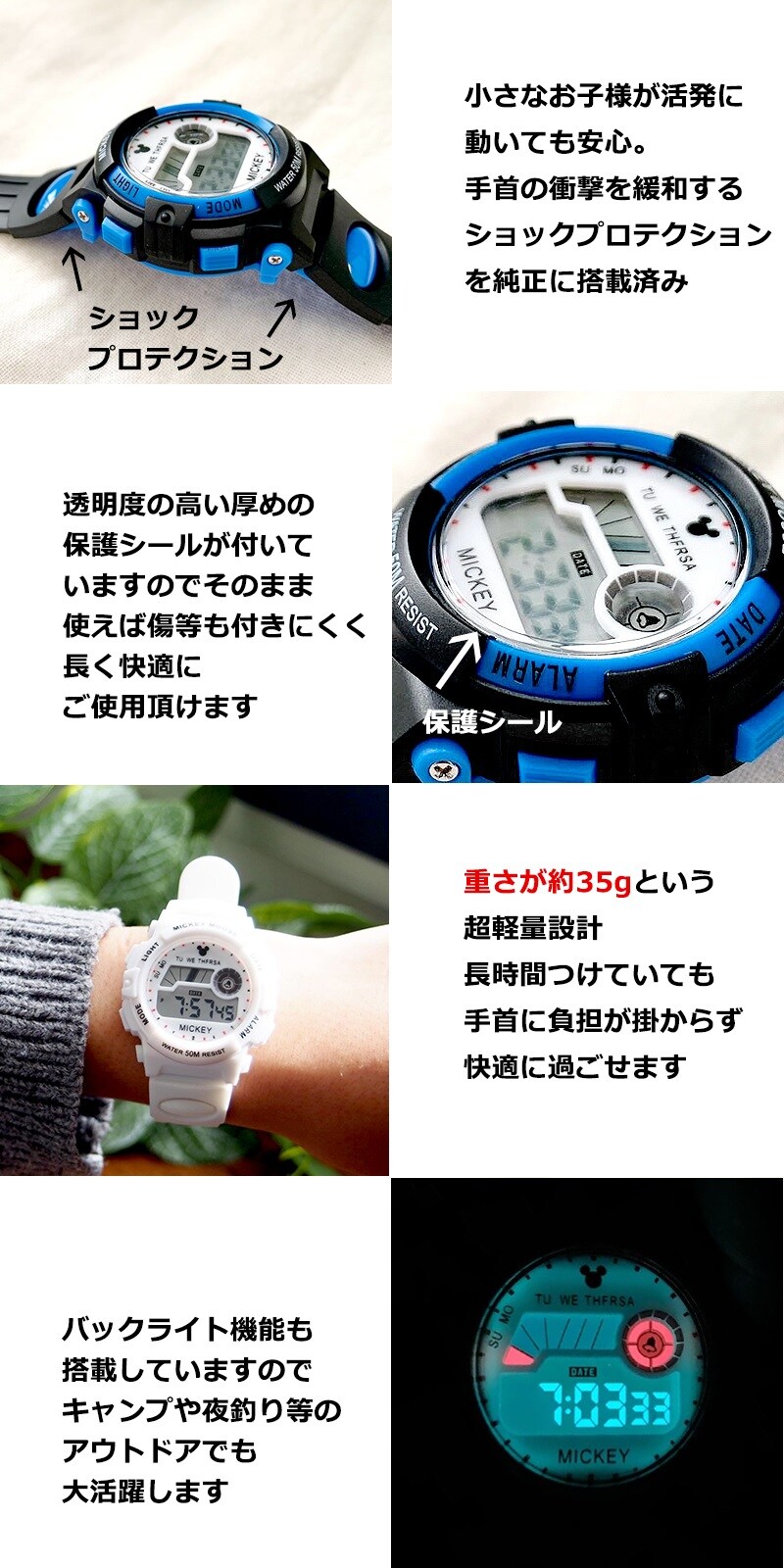 50M防水【デジタル表示 ミッキー スポーツ ユニセックス 腕時計】ディズニー キッズ【W×O】 | ディズニーでも珍しい、50M防水機能を搭載している、スポーティーモデルウォッチ。