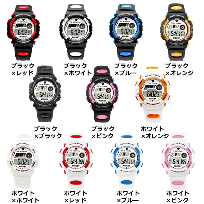 - 50M防水【デジタル表示 ミッキー スポーツ ユニセックス 腕時計】ディズニー キッズ【W×O】