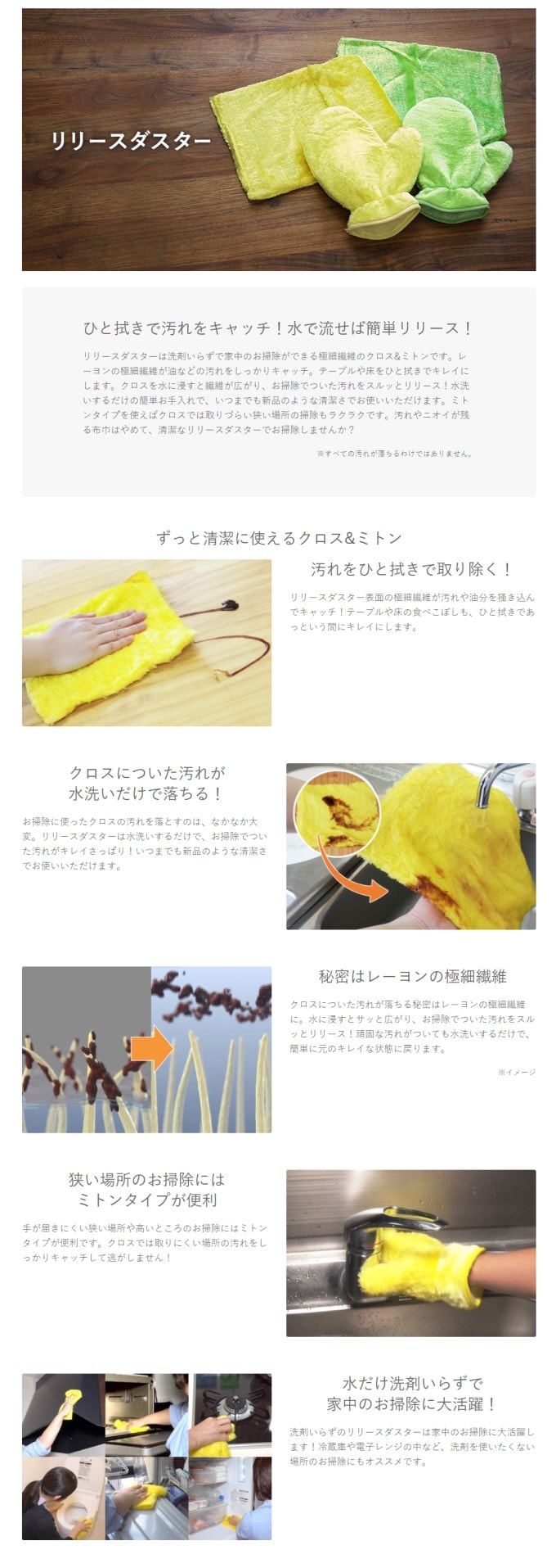 リリースダスター | 極細繊維が汚れをひと拭きでしっかりキャッチするクロス&ミトン