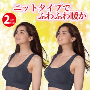 2枚組【M-L/ネイビー2枚】エアーフィット美バストニットブラ | ニットタイプでふわふわ暖か