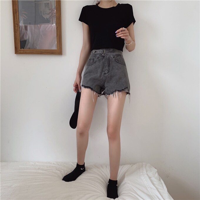 - 【グレー/M】レディースボトムスパンツデニムシンプルデニムカジュアルカットオフショートパンツ