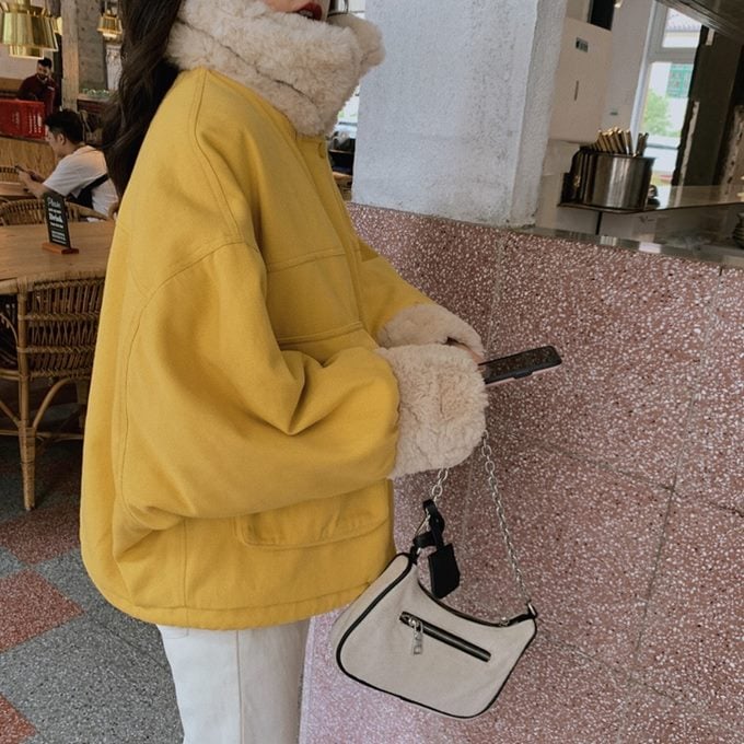 - 【マスタード/M】レディース長袖トップスアウターコートブルゾンシンプル ボアジャケット