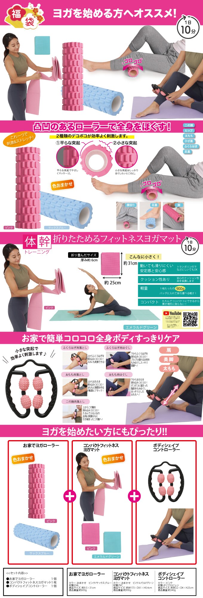 ヨガスターター3点セット(ヨガローラー/ヨガマット/ボディシェイプコントローラー) | ヨガを始める方におすすめ!全て揃う!福袋