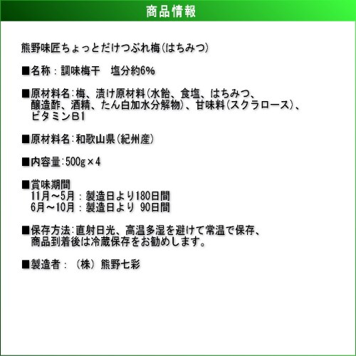 - 【500g/はちみつ】熊野味匠 ちょだけつぶれ梅干(500g...