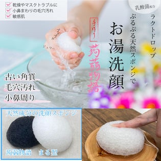 【2個】【日本製】ラクトドロップ蒟蒻物語(コンニャクスポンジ) まる型 しろ くろセット | お湯洗顔!江戸時代から続く伝統!天然のこんにゃくで出来た洗顔スポンジで毛穴ケア