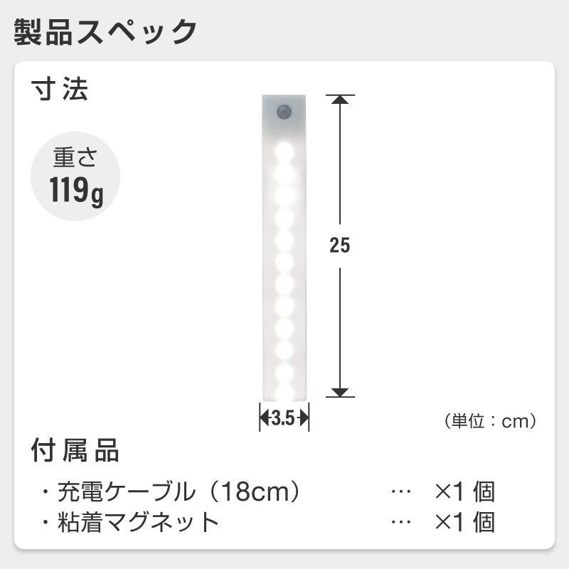 【カラー:ホワイト(昼白色)】センサーライト LEDライト 感知式 Mサイズ 250mm | REDHiLL 正規品 小型 クローゼット 階段 リビング 足元灯 ナイトライト 寝室