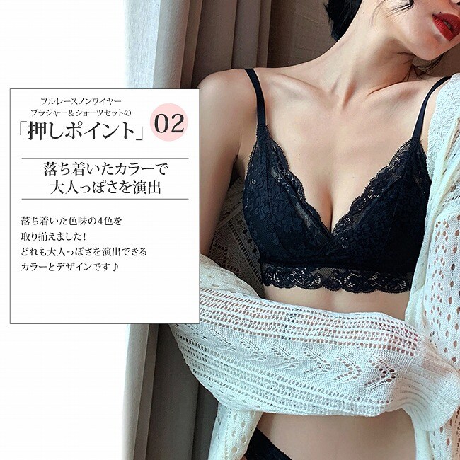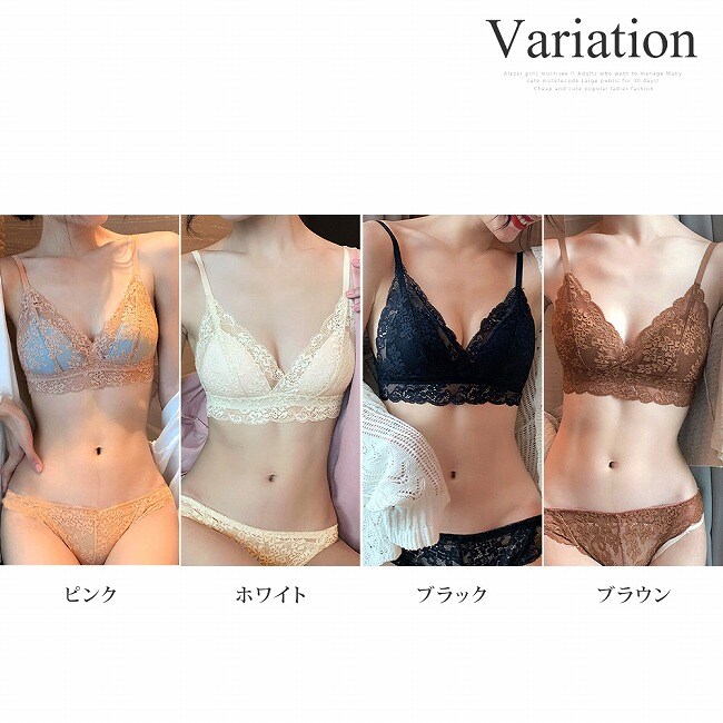 ・大胆なレースデザイン!カップが透けているタイプでとてもセクシーで大人らしい。ノンワイヤーのブラ&ショーツセットです!